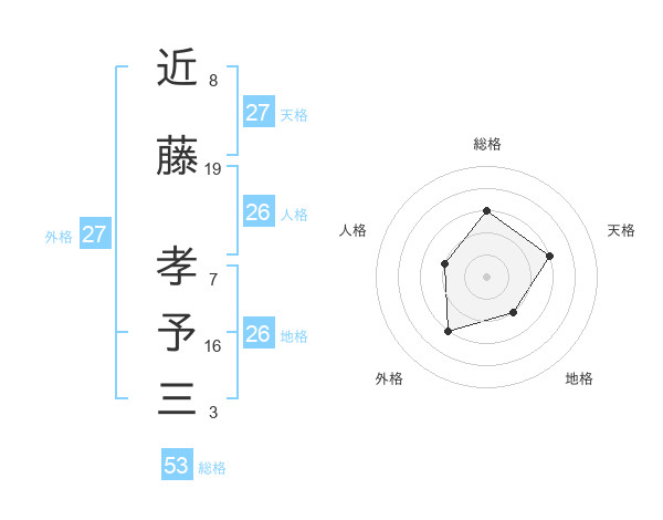 近藤 孝予三さんの総格は53画の3点!