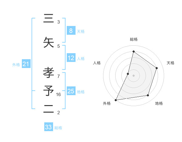 三矢 孝予二さんの外格は21画の5点!