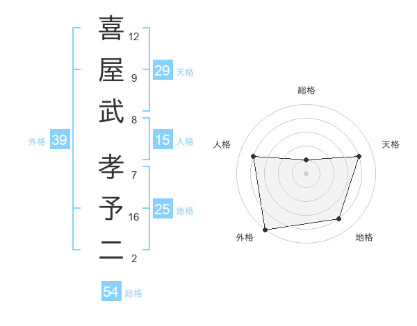 喜屋武 孝予二さんを姓名の画数から五運を鑑定