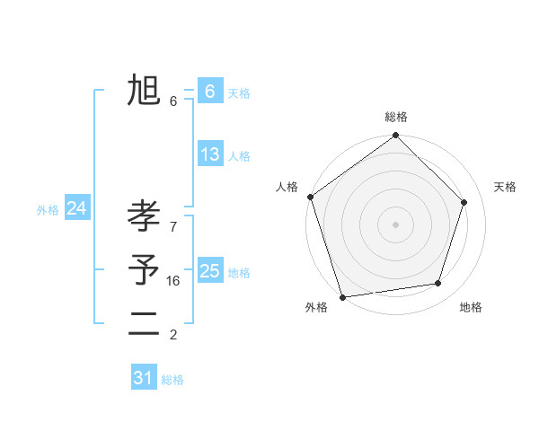 旭 孝予二さんの総格は31画の5点!