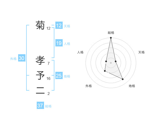 菊 孝予二さんの総格は37画の5点