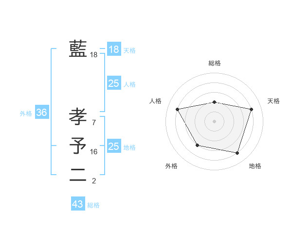 藍 孝予二さんの天格は18画の4点!