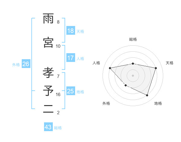 雨宮 孝予二さんを姓名の画数から五運を鑑定