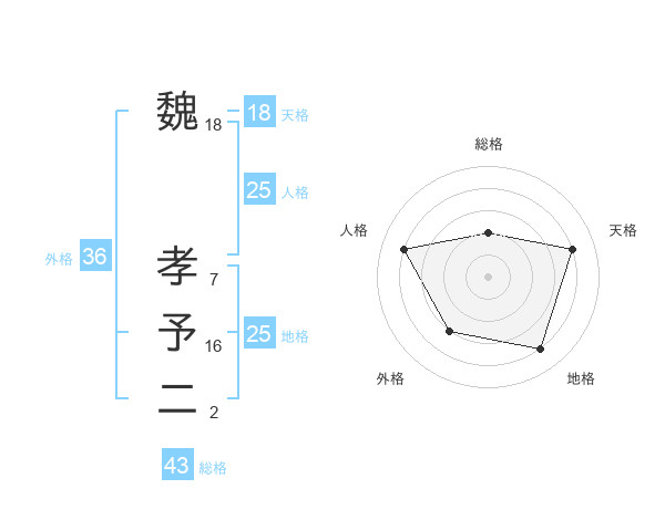 魏 孝予二さんを姓名の画数から五運を鑑定