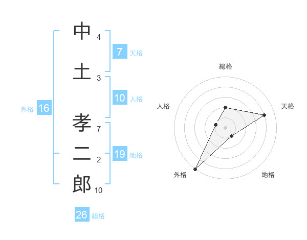 中土 孝二郎さんを姓名の画数から五運を鑑定