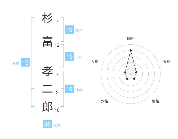 杉富 孝二郎さんを姓名の画数から五運を鑑定
