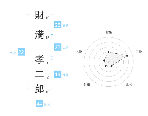 財満 孝二郎さんを姓名の画数から五運を鑑定