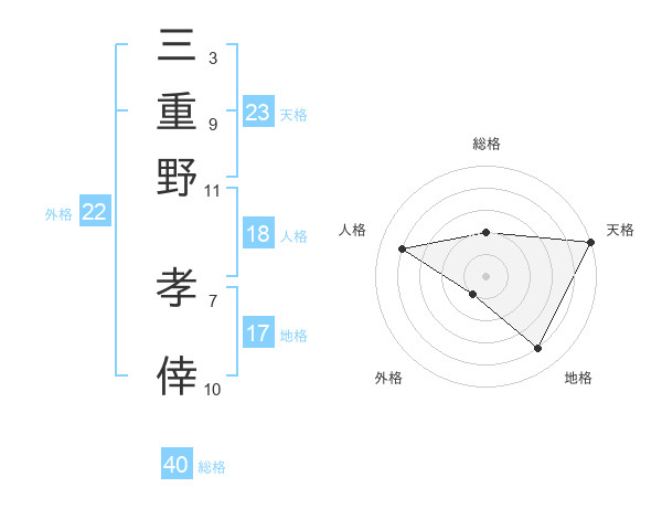三重野 孝倖さんを姓名の画数から五運を鑑定