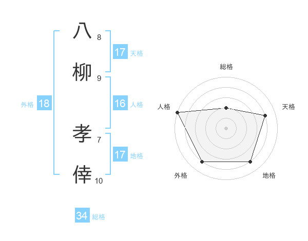 八柳 孝倖さんの天格は17画の4点!