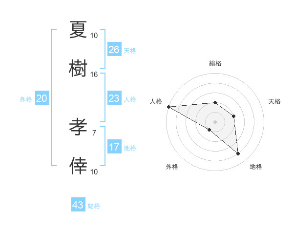 夏樹 孝倖さんの天格は26画の2点!