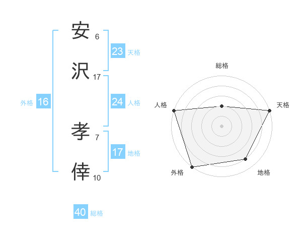 安沢 孝倖さんを姓名の画数から五運を鑑定