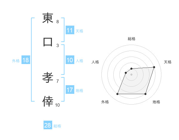東口 孝倖さんを姓名の画数から五運を鑑定