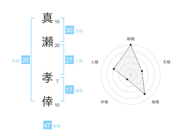 真瀬 孝倖さんの総格は47画の5点!