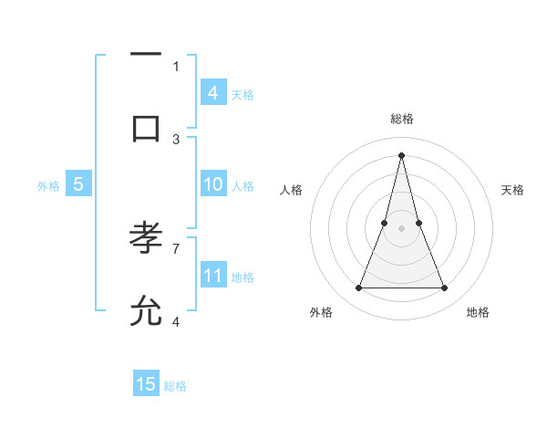 一口 孝允さんの総格は15画の4点!