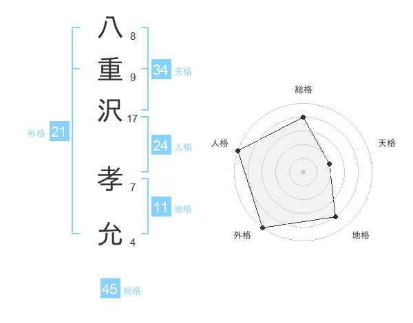 八重沢 孝允さんの総格は45画の4点!