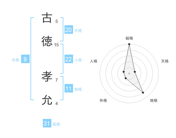 古徳 孝允さんの総格は31画の5点!