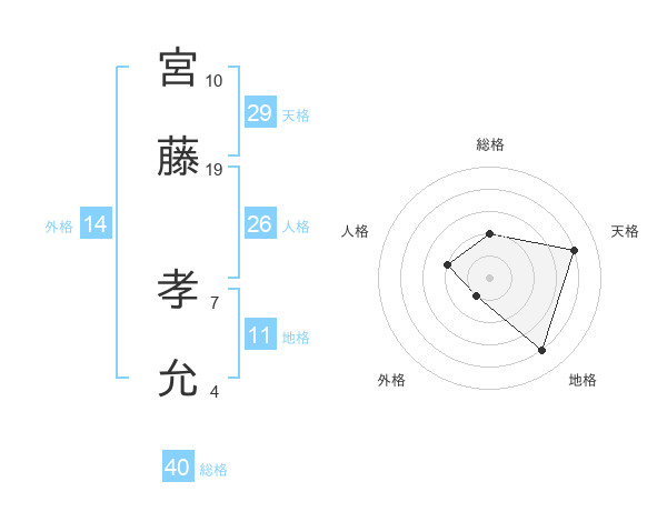 宮藤 孝允さんを姓名の画数から五運を鑑定