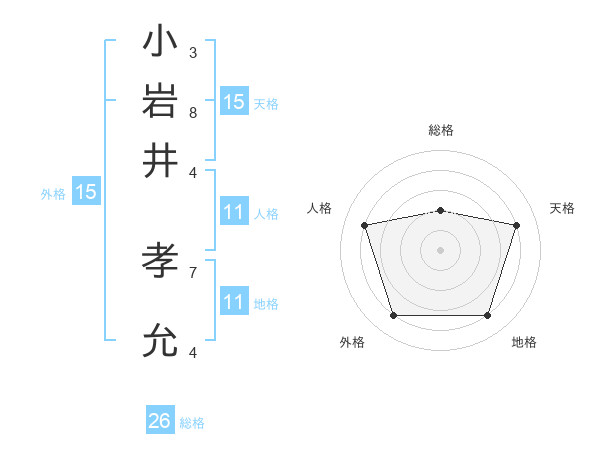 小岩井 孝允さんを姓名の画数から五運を鑑定