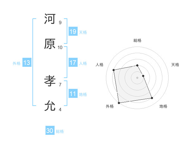 河原 孝允さんの総格は30画の2点!
