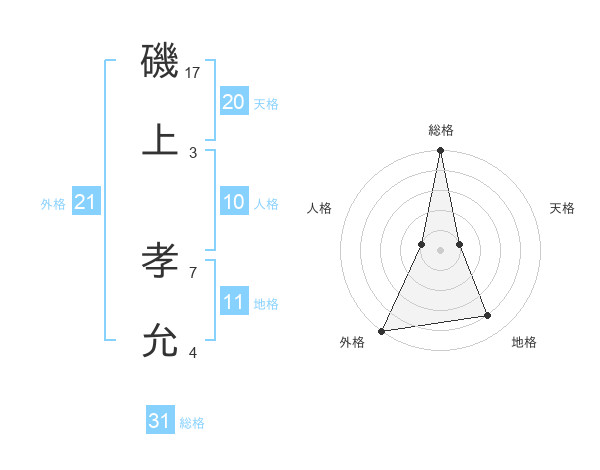 磯上 孝允さんを姓名の画数から五運を鑑定