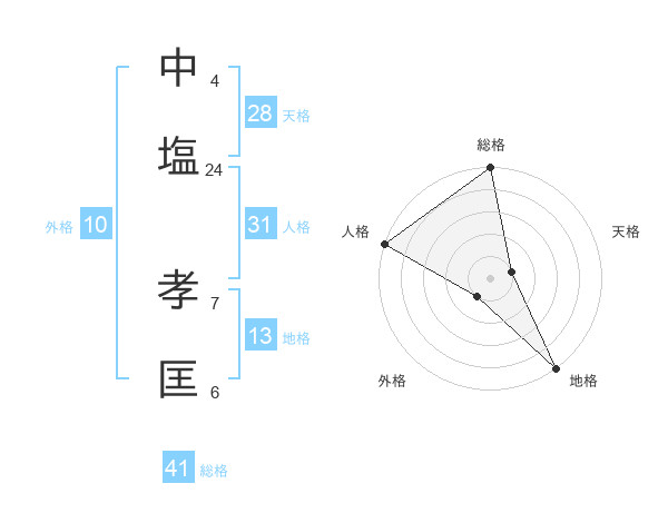 中塩 孝匡さんを姓名の画数から五運を鑑定