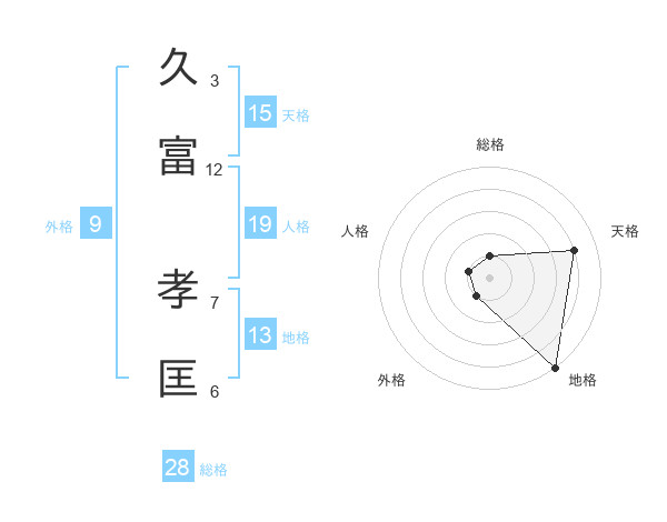 久富 孝匡さんを姓名の画数から五運を鑑定