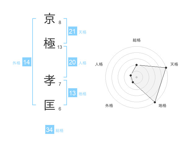 京極 孝匡さんの天格は21画の5点!
