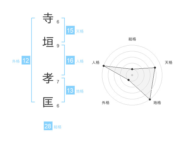 寺垣 孝匡さんを姓名の画数から五運を鑑定