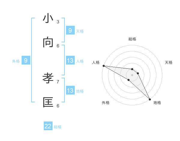 小向 孝匡さんの総格は22画の1点!