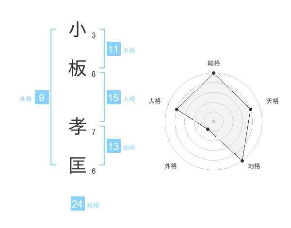小板 孝匡さんの総格は24画の5点!