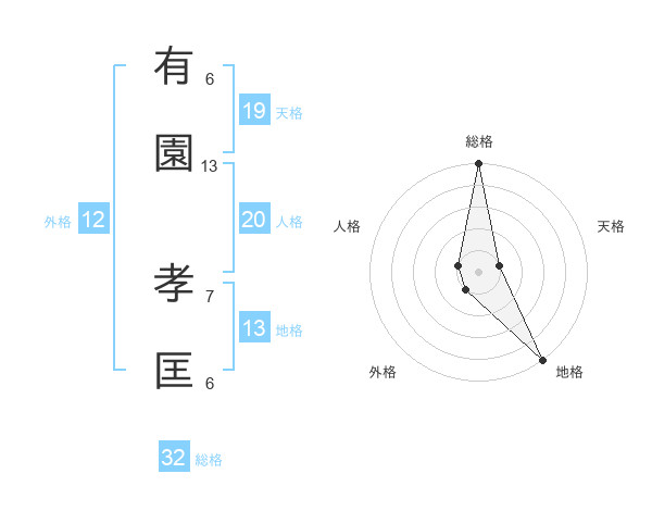 有園 孝匡さんの総格は32画の5点!