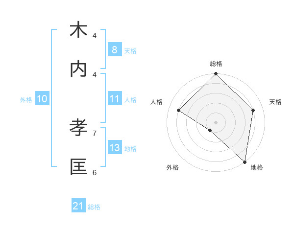 木内 孝匡さんを姓名の画数から五運を鑑定