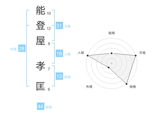 能登屋 孝匡さんを姓名の画数から五運を鑑定