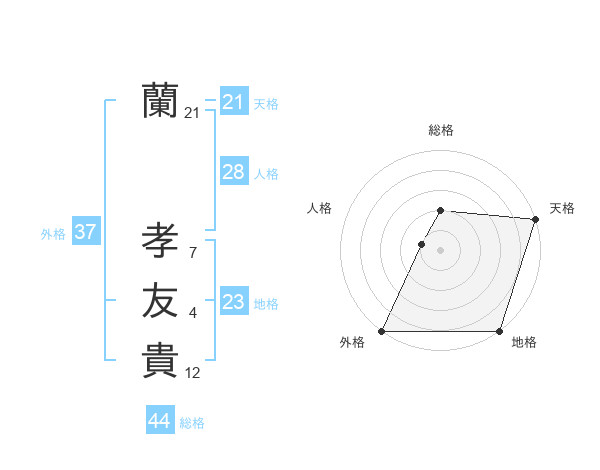 蘭 孝友貴さんを姓名の画数から五運を鑑定