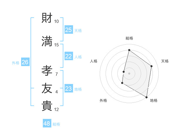 財満 孝友貴さんを姓名の画数から五運を鑑定