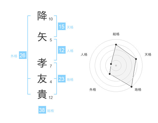 降矢 孝友貴さんの総格は38画の4点!