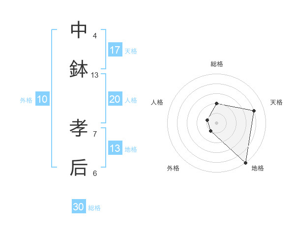 中鉢 孝后さんの天格は17画の4点!