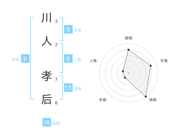 川人 孝后さんの総格は18画の4点!