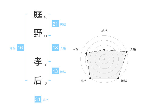 庭野 孝后さんの総格は34画の2点!