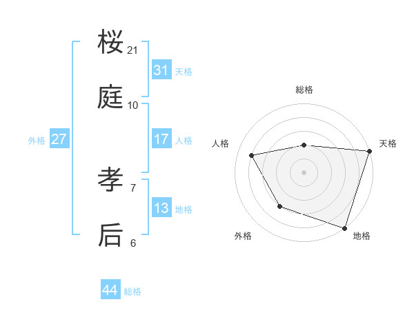 桜庭 孝后さんを姓名の画数から五運を鑑定