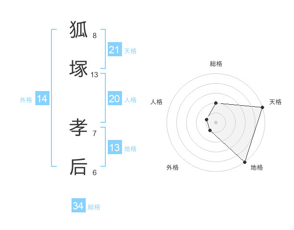 狐塚 孝后さんを姓名の画数から五運を鑑定