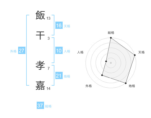 飯干 孝嘉さんを姓名の画数から五運を鑑定