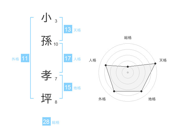 小孫 孝坪さんの総格は28画の1点!