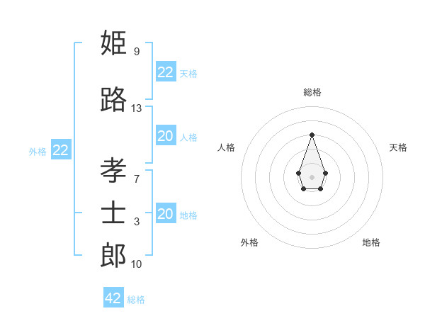 姫路 孝士郎さんの総格は42画の3点!