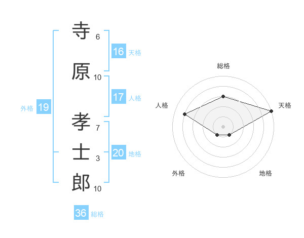 寺原 孝士郎さんの天格は16画の5点!