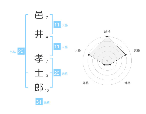 邑井 孝士郎さんを姓名の画数から五運を鑑定