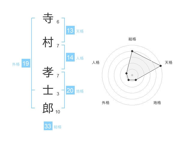 寺村 孝士郎さんを姓名の画数から五運を鑑定