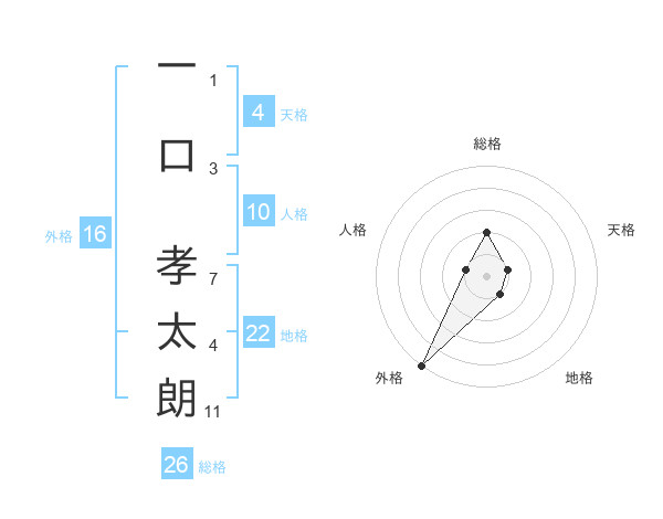 一口 孝太朗さんを姓名の画数から五運を鑑定