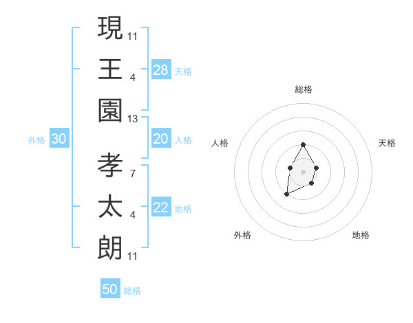 現王園 孝太朗さんの総格は50画の2点!