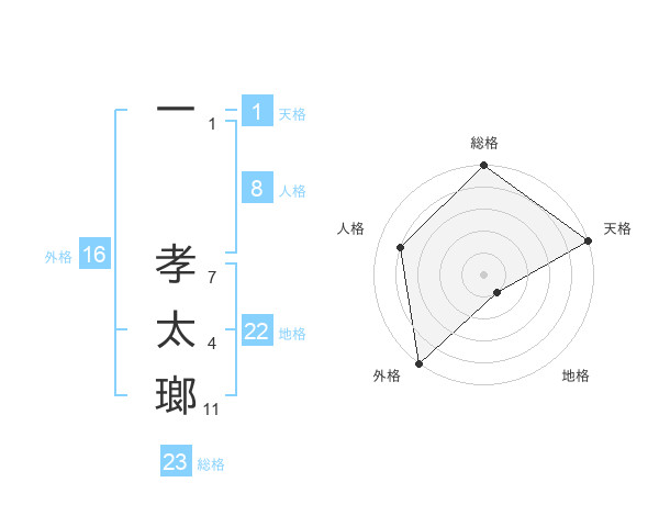 一 孝太瑯さんを姓名の画数から五運を鑑定
